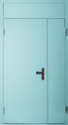 Если ширина и высота проема нестандартные, удобнее всего установить полуторные технические двери с глухим полотном и фрамугой. Статичная створка оснащена петлями и вертикальными штырями, что позволяет открывать ее в случае необходимости.